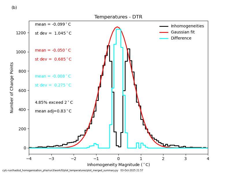 The inhomogeneity information has been calculated presuming the most recent period of a station is accurate and hence tranversing the timeseries backwards in time. Therefore a negative in homogeneity value given indicates that prior to the month given, the data is at a lower value (so the adjustment required would be positive). Conversely, a positive vaue indicates that prior to the month given the data is at a higher value (a negative adjustment required).